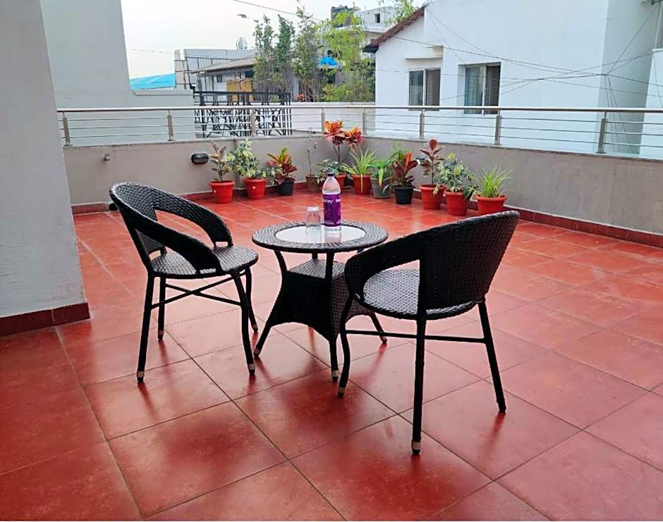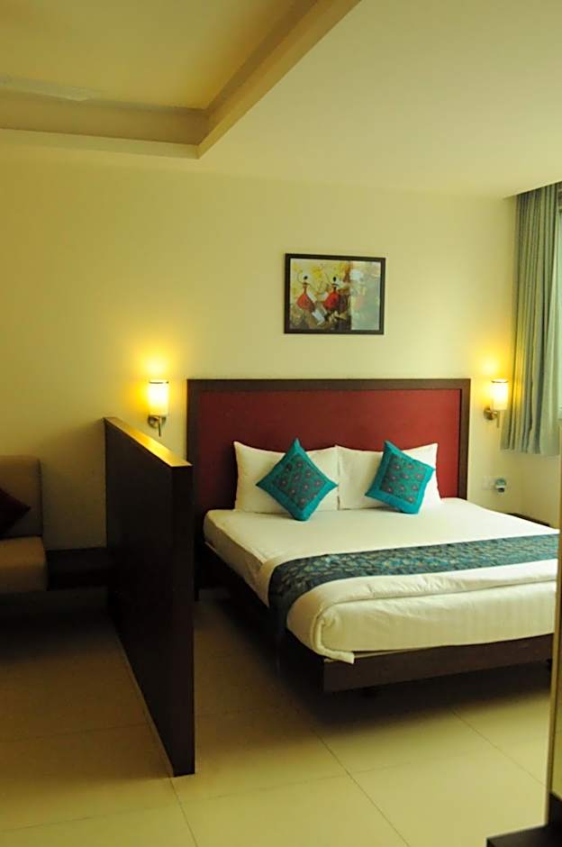 This twin/double room features a private entrance and seating area.